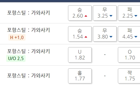1번 포항스틸이 앞에 있기 때문에 포항스틸이 승리 할것이냐 무승부가 날것이냐 패배를 할 것이냐를 선택하는 부분이다