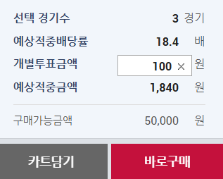 사이트에서 사진을 가져왔다. 보시면 한경기에 4가지나 선택 할 수 있는 부분이 있다.