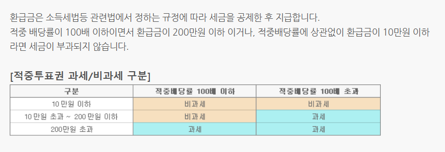 환급금이 200만원 이하이면 세금을 내지 않는다 당첨금이 200만원을 안넘게 세팅하면서 게임을 노려보면 좋을 것이다.
