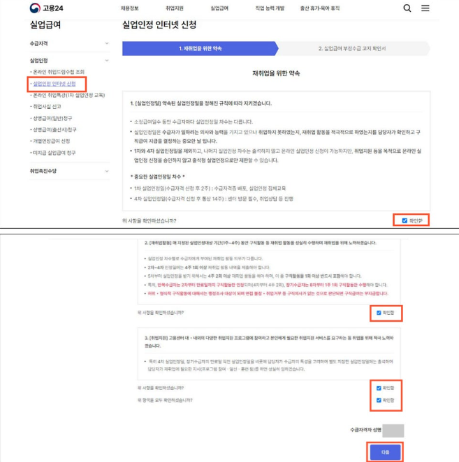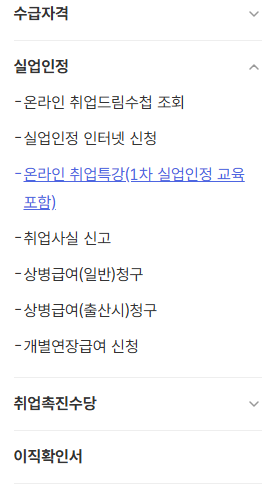이떄 실업인정을 받기 위해서는 입사지원서 제출 취업관련 강의 수강을 통해 재 취업을 위해 노력을 했다는 것을 인증해야 합니다.